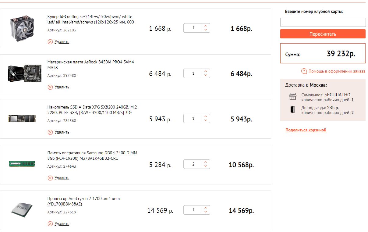 Накидал вот в магазине Мегабит конфигу, но я не особо шарю, подскажите, если где неправильно:
