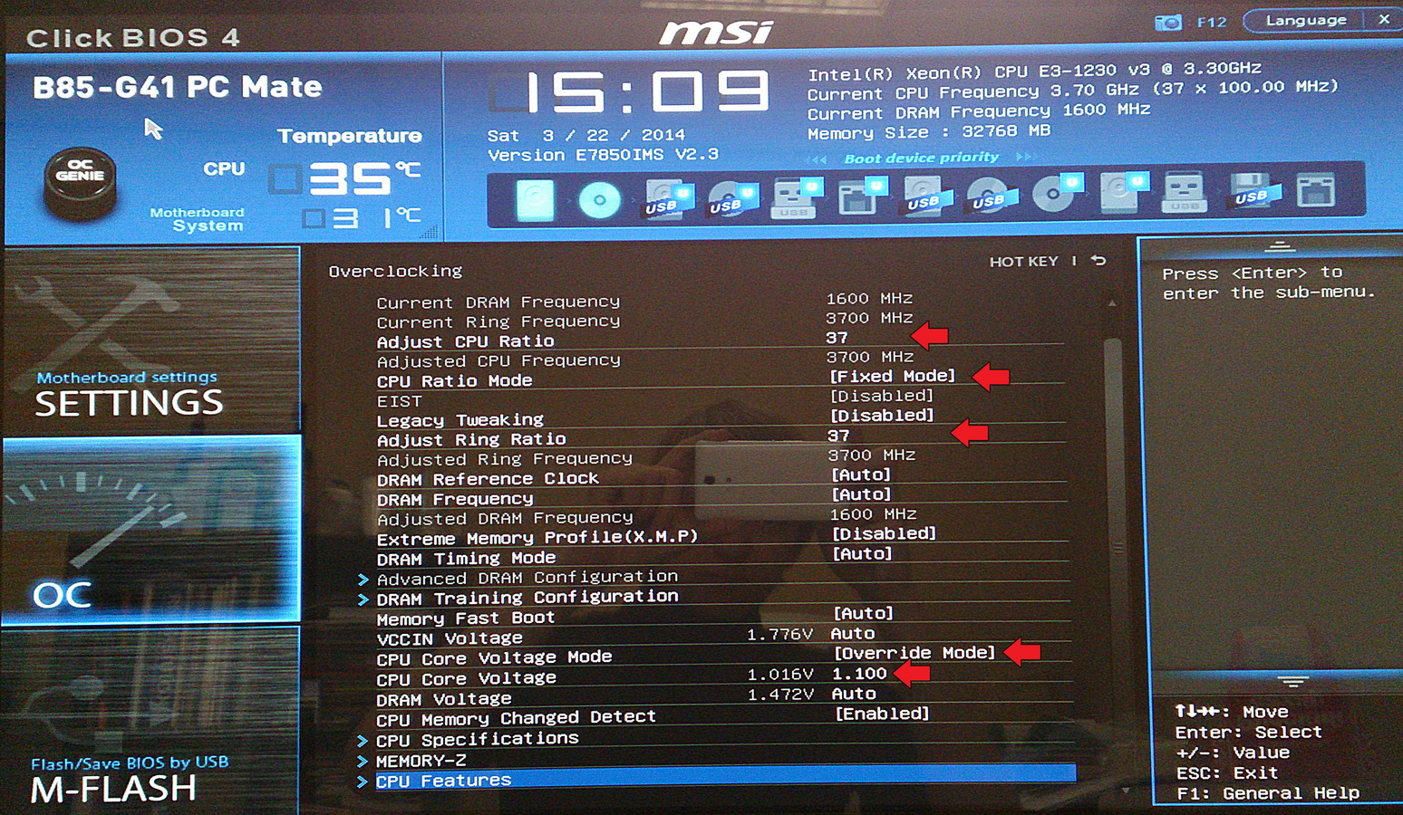Сделал как вы описали. В bios все сохранилось, при перезагрузке значения не скидываются. В windows CPU-Z показывает 3300. Там есть меню CPU Features, может в нем что-то еще нужно выставить? Я отметил стрелочками значения, которые я поменял.