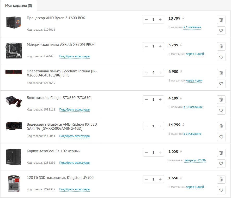 Marmaduk93 Я не понял что за фишка в ДНС с доп. скидками, которых в сумме получается 1251р (500+200+200+351). Немного добавив, на эти деньги можно купить SSD, например Kingston UV500 (пока на него скидка). Если эти скидки не прокатят, то придётся снимать HDD со старого компа. В дальнейшем желательно купить и кулер получше.
