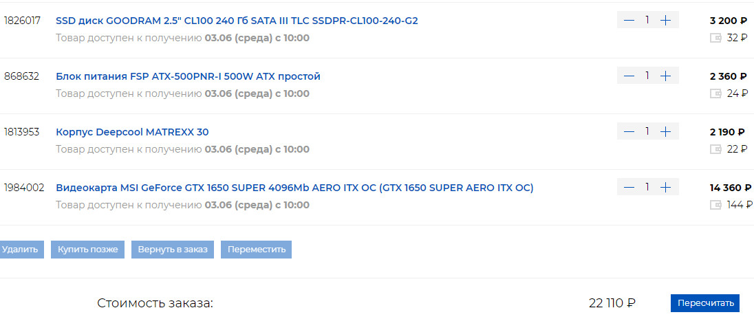 James_on По БП, я не себе беру, поэтому всё-таки лучше в ситилинке взять, пусть и чуть хуже по качеству (можно на троечку с плюсом), если уж совсем вариантов нет, можно с Регарда заказать или ещё откуда-то. По оперативке: какая альтернатива, если сразу на 3000 взять?