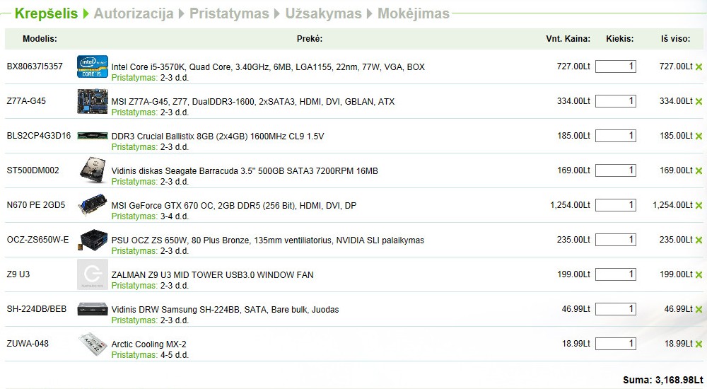 . PoLkovNik . Нету у нас в Литве памяти Samsung, Hynix. Память выбрал такую так как Kingston у нас с завышенным питанием - 1,65в и дороже чем Crucial. Карт GTX7** почти нету у нас. Мне сойдёт выбранная мной MSI N670 PE 2GD5/OC. DVD Nec, Pioneer тоже в этом магазине нету как и в других. (странный какой то ассортимент фирм - изготовителей у нас в Литве ).