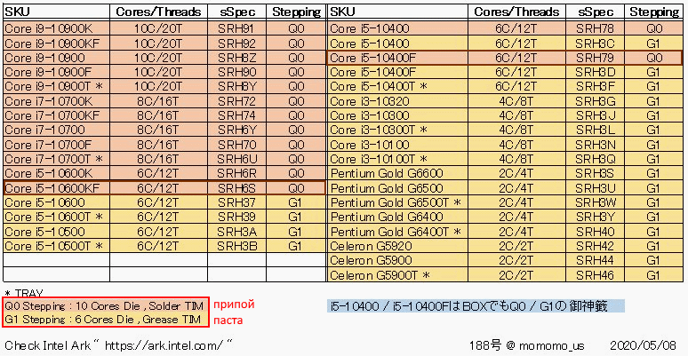 Процессоры со степпингом G1 основаны на шестиядерном кристалле, который мало отличается от кристалла Coffee Lake. А вот процессоры со степпингом Q0 имеют в своей основе новый 10-ядерный кристалл!