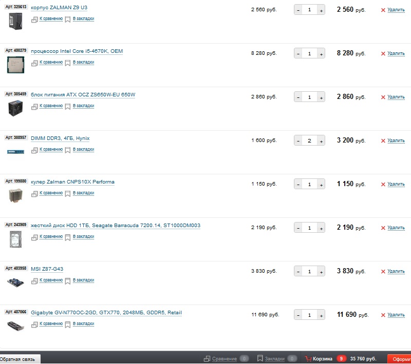 Все кулеры с поддержкой 1155 совместимы и с 1150, ибо расположение разъемов одинаково. Чуть лучше было бы true spirit 120, но не нашел его в наличии. Если не будите скальпировать проц, то этого вам вполне хватит. Если будите снимать с проца крышку, то можно посмотреть в сторону true spirit 140. Без скальпирования вы серьезно проц не разгоните (врятли больше 4400мгц), со скальпированием лишитесь гарантии и рискуете лишиться проца. Решайте сами, на этом форуме есть темы и статьи про скальпирование. Жесткий green не советую, если не нравится сегейт (хотя зря), то возьмите лучше wd blue. И я бы не стал покупаться на то что грин тише, и дело даже не в том что это не так, а в том что остальные вентиляторы (проца, видеокарты, бп, корпусные и т.д.) шумят сильнее. У меня сегейт на 3тб (3 пластины) и его не слышно, а тут всего 1тб с 1 пластиной. Тем более что он у вас будет не системным. Оперативку лучшего всего hynix и samsung.