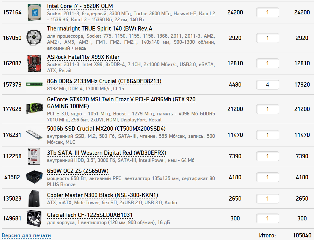 P.S. Так же Обращал внимание на готовые сборки, вроде этой: http://hyperpc.ru/%D0%BA%D0%BE%D0%BC%D0 ... ation-5000 Стоит ли оно того? (Ценник уж больно кусается, перебор, хотя начинка хороша, но можно собрать и подешевле, ничуть не хуже)