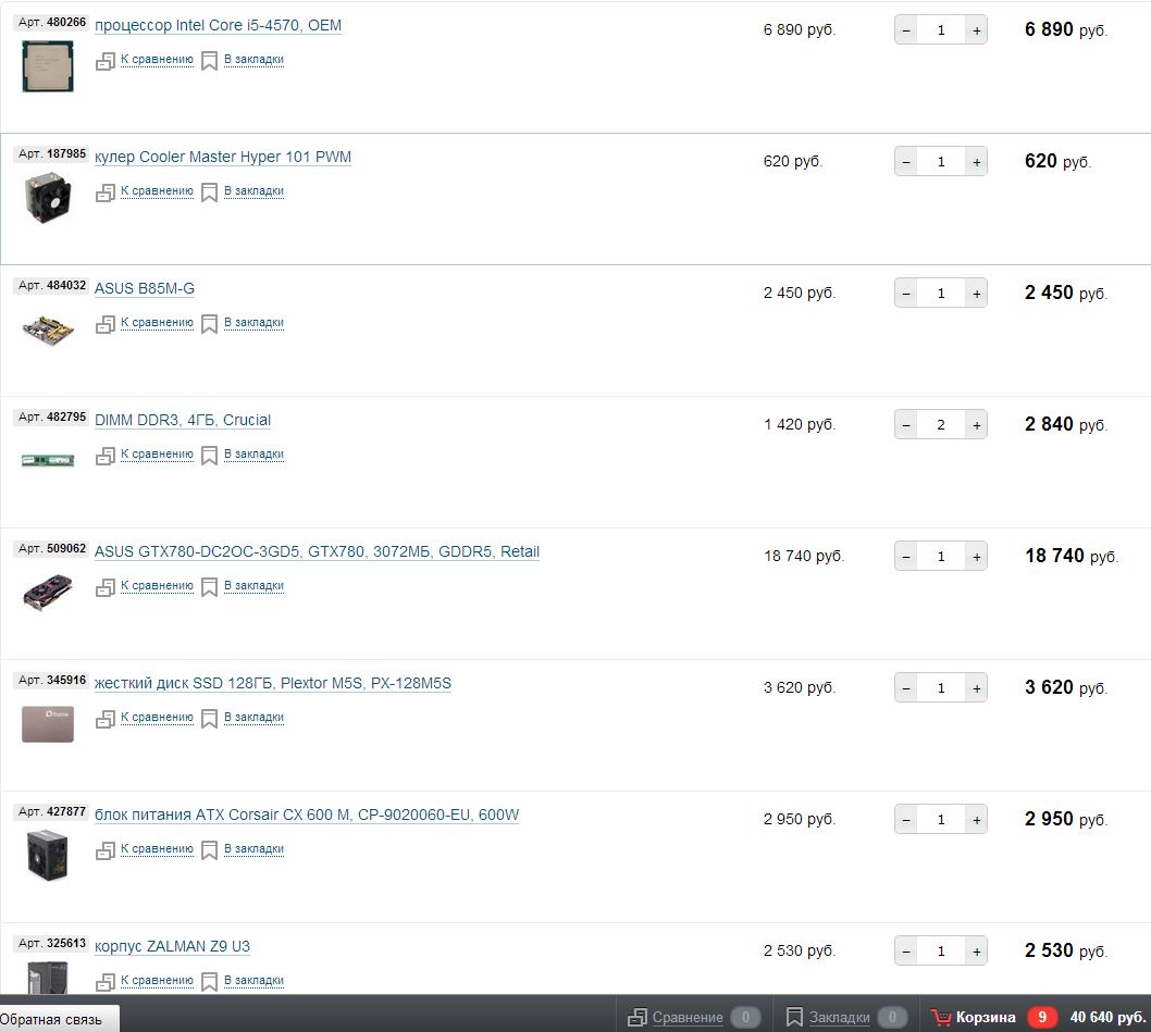 Другие магазины не рассматривать? Сколько Вы готовы переплатить, чтобы все комплектующие были именно из ассортимента Олди (там нет, например, хорошего корпуса Fractal Define R4)?