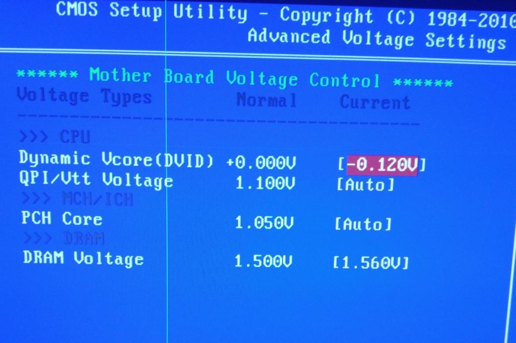Вот как на скрине у тебя у меня то же самое. Только я вообще пробовал ставить чуть ли не -0.24,сохранял и перезапускал. Аида показывала всё так же скачки от 0.9 до 1.3 а под нагрузкой шло 1.294 всегда. Может мне энергосберегайки поотключать? помню там раздел был с ними. Биос пытался обновить с флешки, так он её не видит.