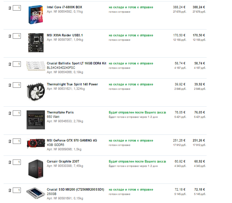 Покурил форумы и определил направление CPU i7 5820k MB MSI x99 Sli Krait Edition DDR G.Skill Ripjaws V 32Gb (4x8) SSD Samsung SM-951 M.2 (2280) 256Gb это всё присмотрел в немецком CU (примерно 55 тр), с остальным пока неопределенность, посоветуйте остальные компоненты. Возможно я что-то некорректно выбрал - помогите оптимизировать, за ранее большое спасибо.