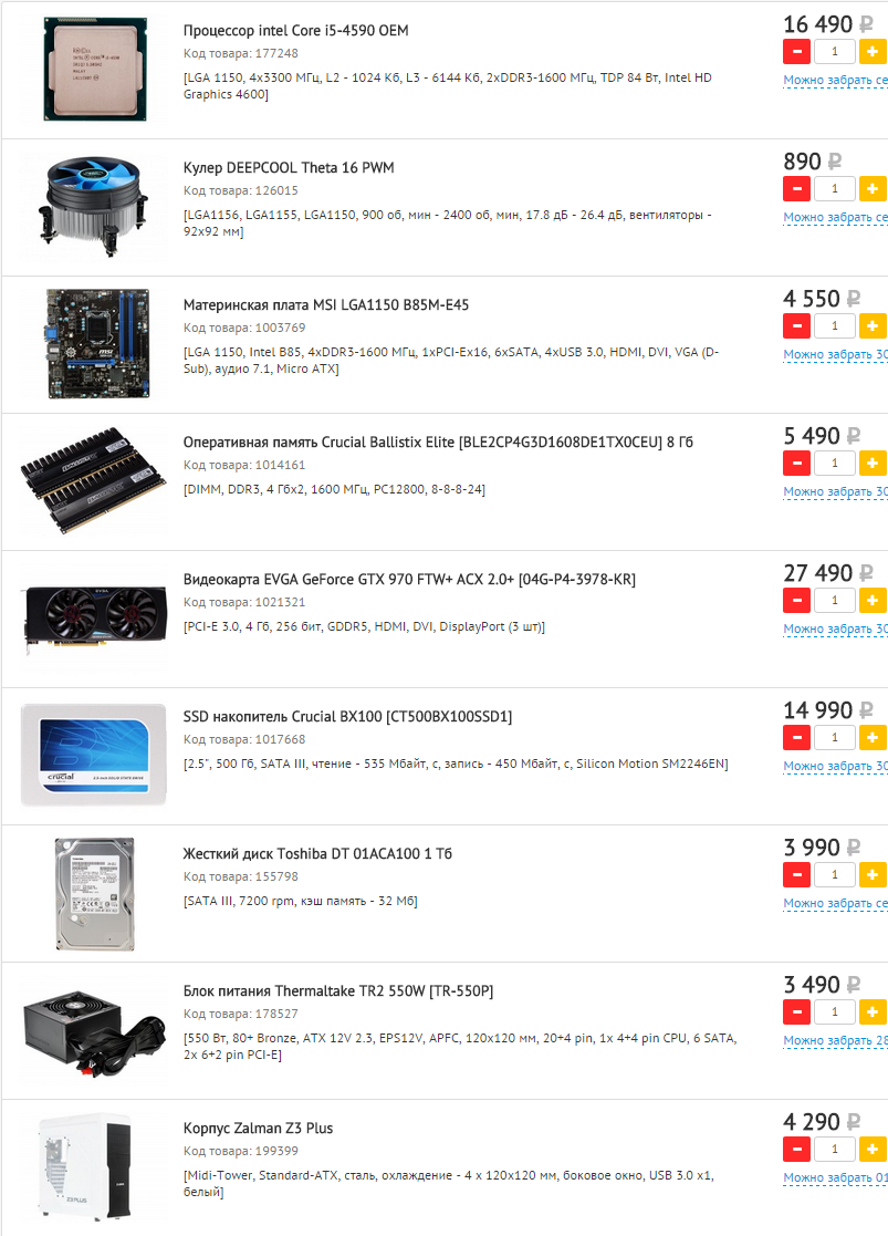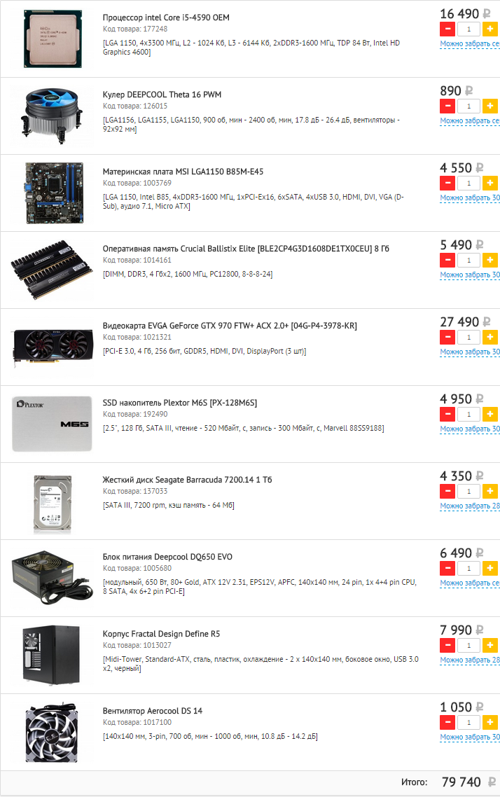 Noveon Спасибо!. Вопрос по сборке системного блока до 80-ти тысяч, ещё актуально. Интересует именно баланс между процессором, материнской платой, блоком питания и видеокартой. http://www.dns-shop.ru/catalog/cart вот такое собрал, не хватает жеского, привода и оперативки. Нормально?