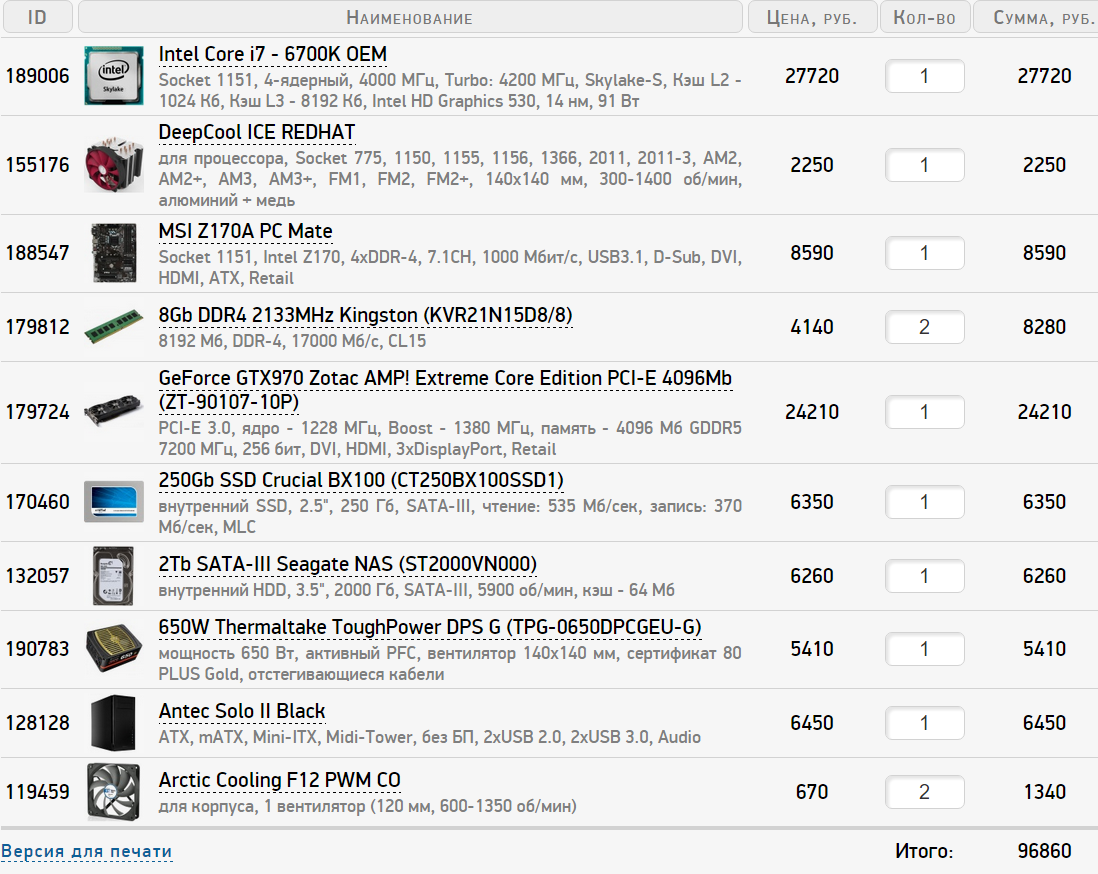 1) 90-100к 2) http://www.regard.ru/ 3) только системник 4) для игр, 1920х1080 5) разгон не планирую 6) апгрейд не планирую, ну может ОЗУ докуплю, если 8 гигов мало будет 7) нет 8) чем тише, тем лучше, но это как приятный бонус. В корпус сильно не хочу вкладываться. 9) набросок: http://s50..radikal.ru/i130/1510/20/190cbcd4001e.jpg (6700 и 980).