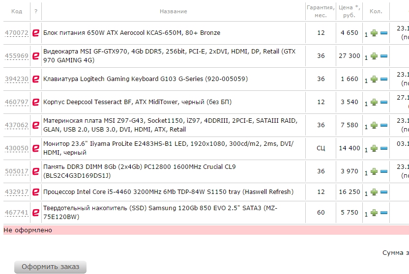 Корпус Corsair Carbide Series 300R Материнская плата GIGABYTE GA-Z170X-Gaming 3 Оперативная память Crucial Ballistix Sport [BLS2C8G4D240FSA] 16 Гб Процессор Intel Core i7-6700K Блок питания Corsair CXM 850W SSD-накопитель Plextor M6 Pro [PX-128M6Pro] Жесткий диск WD Caviar Green WD20EZRX 2 Тб Внутренняя звуковая карта ASUS Xonar DX Итого: 89 140 (запас в 15тыс на воду)