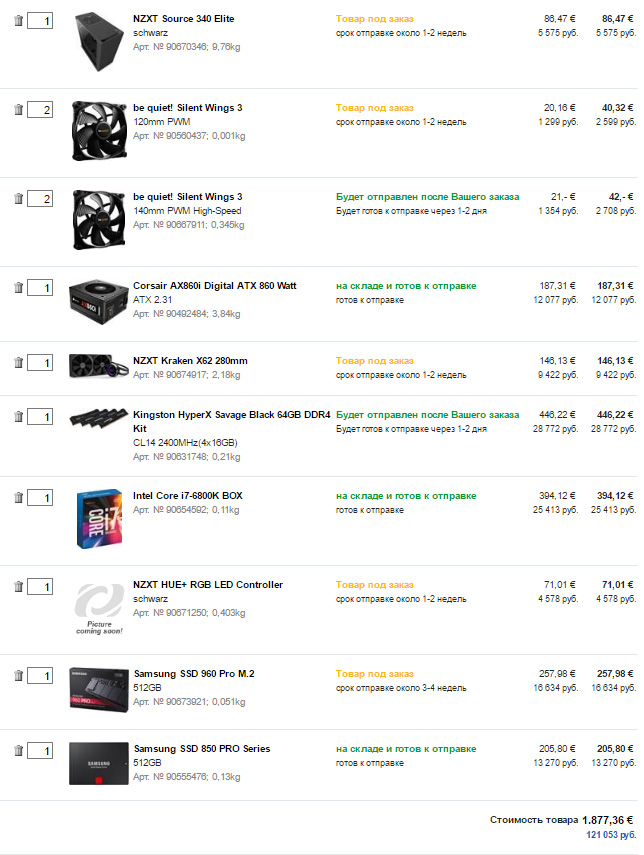 George_LX у вас дикий дисбаланс. Зачем вам 850 Pro SATA на 500 ГБ? Для ОСи и софта 250 не хватит? Даже если нужно на 500 ГБ, зачем такой дорогой? Или если хочется именно такие деньги потратить на SSD, то есть уже Samsung SSD 960 Evo M.2 500GB даже немного дешевле и всё равно быстрее! И зачем вам такой мощный БП?