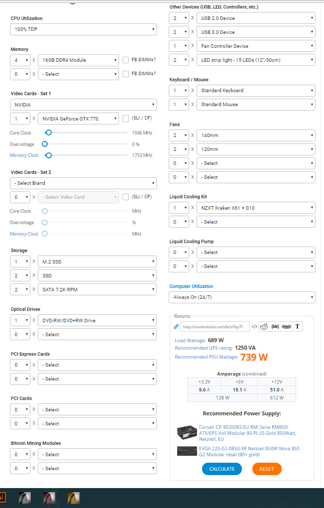 Думается что проц\мать - самые "ненадежные" компоненты системы, которые требуют относительно частой замены. DDR4 вроде будет долго жить, поэтому сразу 16 GB за планку, хотя на данный момент - это избыточно для меня. По поводу БП - онлайн калькуляторы выдают необходимость порядка 770 Вт блока в режиме 24\7. Ну и плюс тишина тоже немаловажный фактор. Насчет SSD - выбирал среди самых популярных стандарта MLC- но, думаю вы правы 256 будет вполне достаточно, к тому же от нынешнего компьютера в него уже переедет дешевый ssd и hdd как помойки.