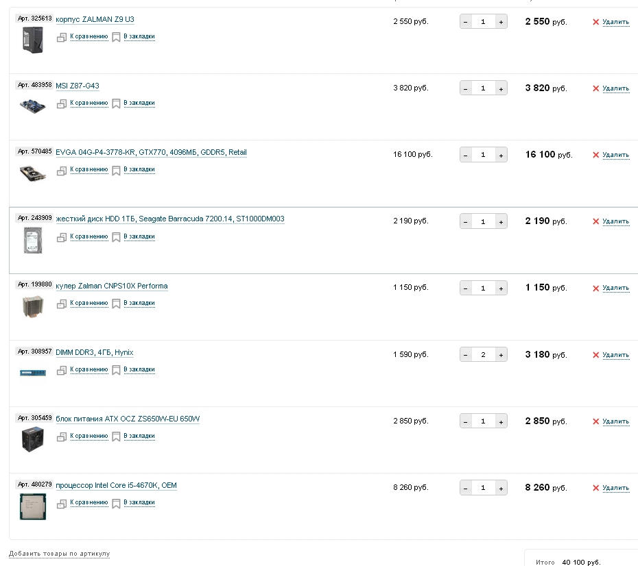 areanu Больше кулеров больше шума. А сбросите от силы пару градусов. Бессмысленно. Предлагаю так Intel 4670 Msi b85 g43 Deepcool gammax 300 Kingston 4gb x2 (недавно покупал в Регарде хюникс оригинал. Не завелась. Оказалась не совместима. Так что если разгона не будет - можно и кингстон взять. Он к слову тоже гонится не плохо ) Seagate barracuda 1tb Msi tf 770 Ocz zs 650w (не забываем что для нужно 42а по 12в линии.) Cooler master storm scout ii advanced snow white Plextor m5s 128gb