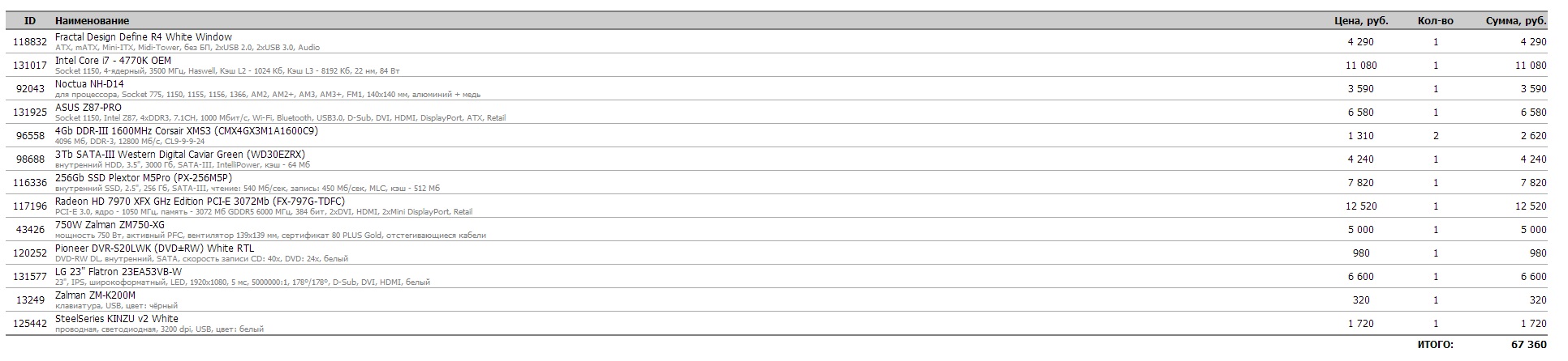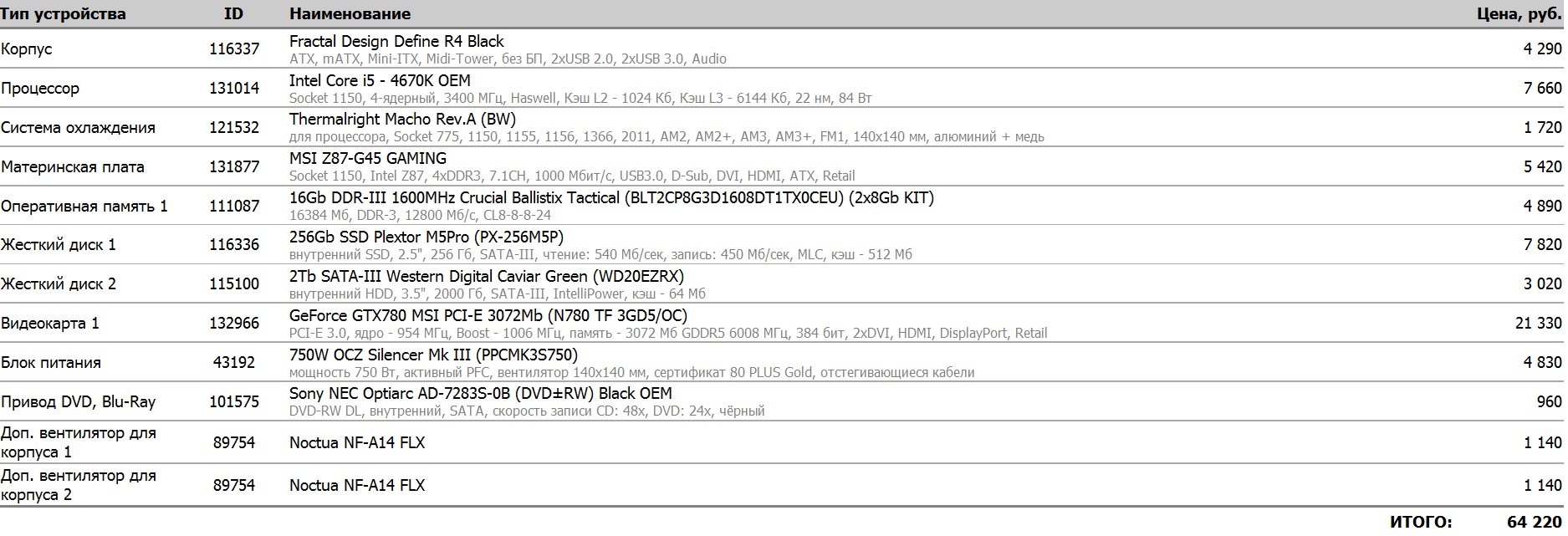 4. SSD взял объемнее (по тестам один из самых быстрых), а вот видеокарту оставил 770. Я исхожу из того, что видео через пару лет можно и заменить, а вот с диском заморачиваться, перенося данные, вряд ли захочется. Плюс я много играю - стирать все предыдущие игрушки, чтобы поставить еще парочку как-то не хочется. Если количество памяти так уж важно, то может, взять 770 с 4 гигами? Гейнвард фантом 4Гб полторы тысячи всего дороже.