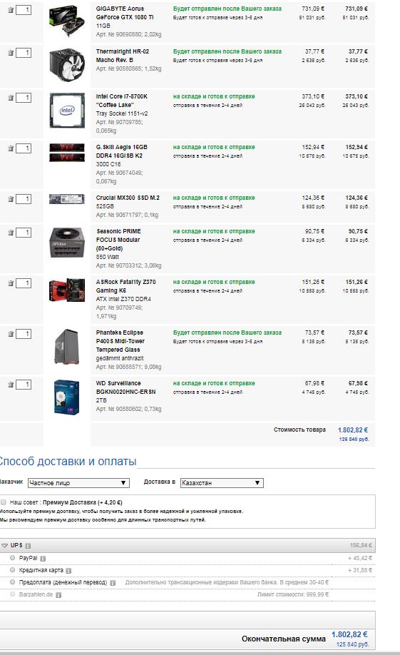Ребяты помогите) В разгоне я ваще не разбираюсь. после того как сгорела видюха на Macbook pro late 2011. решил собрать комп. Собирать буду на computeruniverse так как в Казахстане с выбором слабовато. из основных параметров думал брать i7 8700K и nvidia geforce gtx 1070i.(буду продолжать читать темы про разгон) также хотел ссд на 500гб м.2, оперативу 2х8(16) Ну ваще слабоват. Давно не хавал эту тему с железом. бюджет где-то 2000 евро на системник без монитора. Моник планирую какой нить Samsung 27' curve. Но его я куплю тут у себя. Комп собирается в свой личный кабинет для игр с запасом на ближайшие 2-3-4 года. Не сильно завлекает тема с подсветкой. Если подскажете буду благодарен. Ну прям кто ваще отдуши поможет готов отблагодарить. ну там промокод указать ваш в компутерюниверсе при закупе ну и на баланс закину.