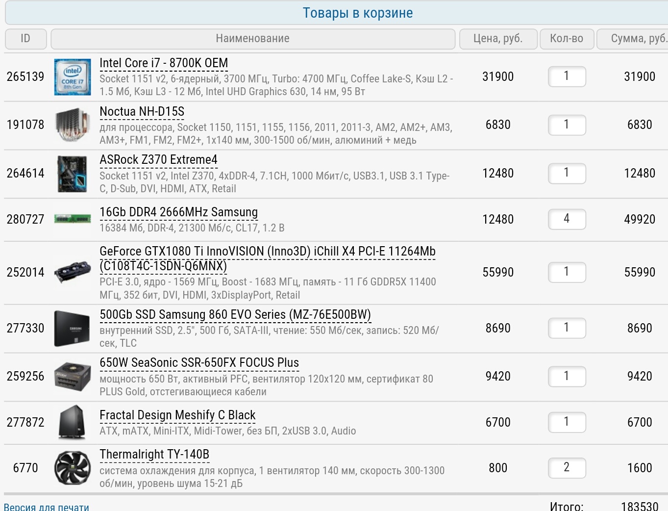 1) 110-130к 2) Москва. Плеер.ру, Регард и тп. 3) Что собираетесь брать: - Только системник 4) Указывайте для каких задач берётся сабж. а) Для игровых систем: - Популярные новинки, World of Warcraft 5) Разгон системы не планирую. 6) Апгрейд не планирую в ближайшие 2-3 года 7) Железа нету 8) Если у Вас есть какое либо требования, уточняйте: - хотелось бы собрать в компактном корпусе, типа этого: https://www.regard.ru/catalog/tovar138333.htm 9) i7 8700, 16 GB DDR4 (желательно 1 планкой), GeForce 1080ti Так же хотел узнать, есть ли смысл собирать на процессоре AMD.
