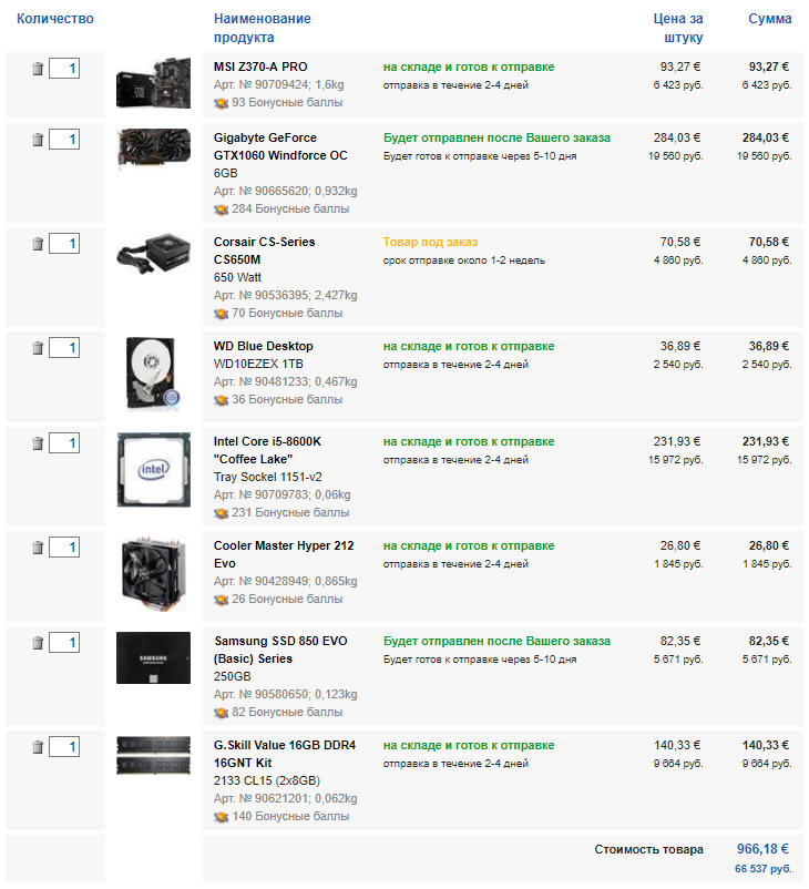 Yarilo007 Ну взять процессор не к версии который в версии вох поставляется в комплекте с кулером, думаю для стока хватит, хотя можно и другой подыскать hdd по сути любой, к примеру любую барракуду либо синий, seagate barracuda посмотрите (любой нужной емкости, раз не системный то можно и 5200рпм) оперативка конечно лучше 2х8 чем 1х16 особенно если в материнке 4 слота, да и можно взять подешевле память, тот же самсунг на 2133 или чего-нибудь без радиаторов (лишняя переплата) бп смотрите либо seasonic либо corsair той же мощности с сертификатами gold и выше
