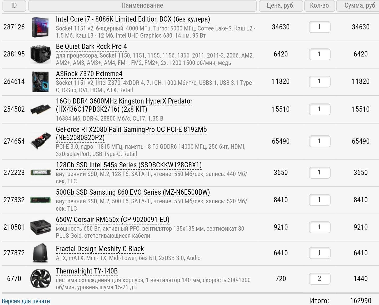 И кулер для процессора забыл. Подправил.