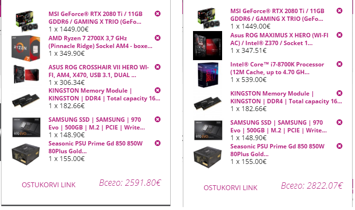 1. 2500-3000 евро 2. Таллин, https://www.arvutitark.ee/rus, ещё как вариант https://www.1a.ee/ или http://atf.ee 3. Собираюсь брать системник. 4. Игры - новинки, из которых RPG, шутеры, MMORPG. Например WoW, Witcher3, Far Cry 5. Также нужна быстрая работа с Lightroom/Photoshop, разными IDE, иногда гоняю несколько виртуалок (пара десктопных/серверных Ubuntu). В данный момент сижу с 1080p монитором, но в планах через полгода-год переход на 1440p 144hz. 5. Разгон планирую, но без крайностей. Ещё не решил - воздух или вода, предпочтительнее скорее всего воздух. С водой опыта нет, но если критично - можно заняться самообразованием. 6. Апгрейд новой сборки не планирую несколько лет. 7. Нет. 8. Asus мп, видеокарты - Nvidia MSI/Asus. 9. 8700K/9700K/9900K или Ryzen 2700x. Сначала думал только о Intel(всегда собирал на нем), но цены удручают. По тестам в интернетах не совсем понятно, нужен ли Intel для 1440p/144hz или нет.
