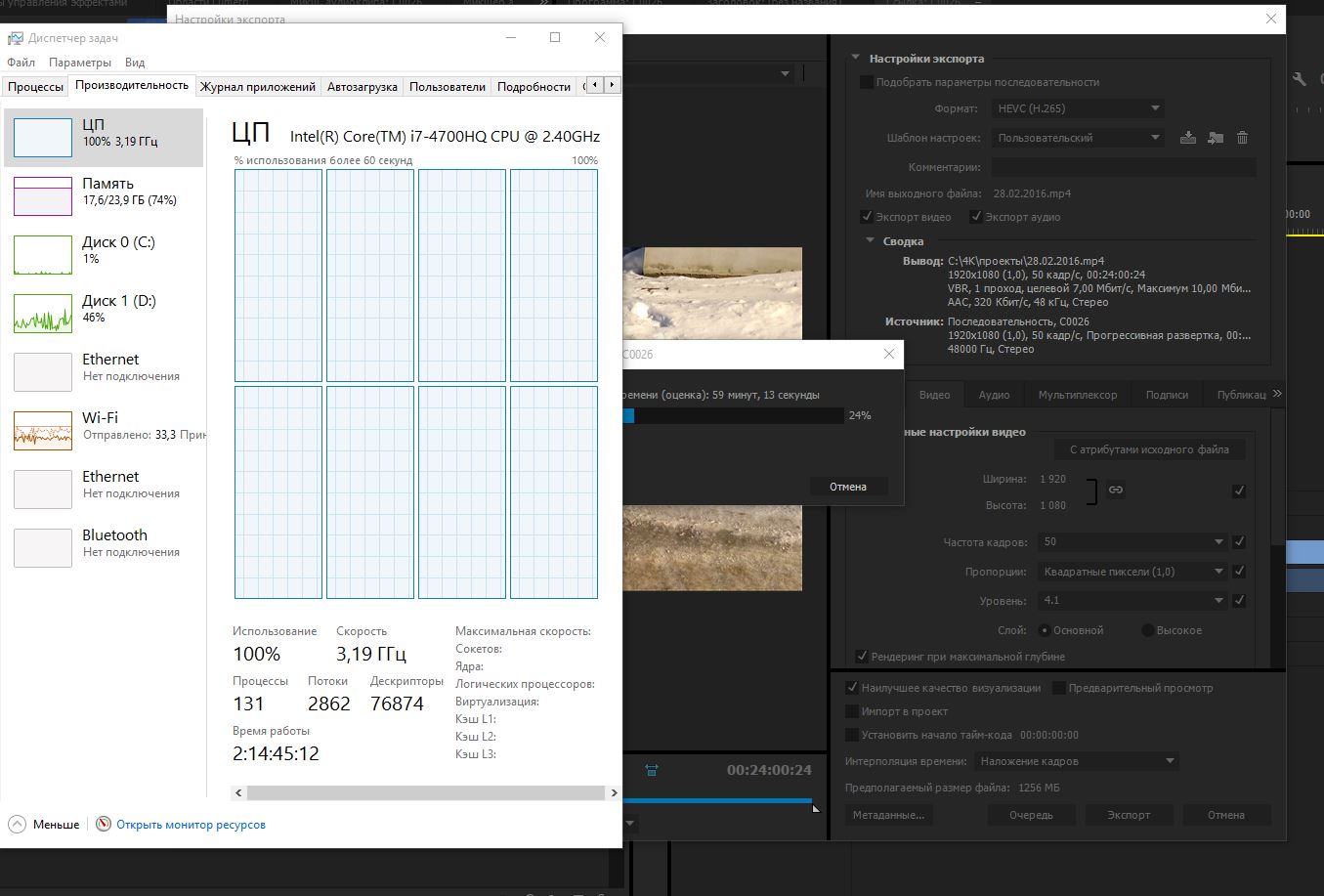 Монтаж в Adobe Premiere CC, 4k60fps (HEVC h.265 с GoPro 6 Black)