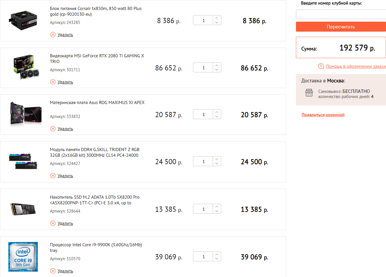 Добрый день. 1) 250 2) Санкт-Петербург, в любом магазине. CU - при необходимости. 3) Что собираетесь брать: Только системник 4) Игруленки и стримы. Монитор LG 32gk850g - 2k, 165hz, G-Sync. Ultra cо всеми наворотами =) Игры всех жанров - от быстрых шутеров (Overwatch, Apex legends) и яростных слешеров (Vermintide 2, Shadow warrior 2) до неторопливых стратегий(CIV 6, TTW WH2) и красивых RPG (Witcher 3, TESO, Fallout 4). 5) Разгон не планирую. 6) Апгрейд не планируется. 7) ZOTAC Gaming GeForce RTX 2080 Ti AMP Extreme 8) Intel/nvidia 9) Наброски конфигурации ПК: CPU: Intel - Core i9-9900K 3.6 GHz 8-Core Processor CPU Cooler: Noctua - NH-D15 82.5 CFM CPU Cooler Motherboard: Asus - ROG STRIX Z390-E GAMING ATX LGA1151 Memory: G.Skill - Ripjaws V Series 32 GB (2 x 16 GB) DDR4-3200 Storage: Samsung - 970 Evo 2 TB M.2-2280 Solid State Drive (система+игрушки) Storage: Seagate - IronWolf 12 TB 3.5" 7200RPM (коллекция 4K UHD HDR кино) Power Supply: EVGA - SuperNOVA G3 750 W 80+ Gold Certified Процессор хочется именно такой, видеокарта с монитором уже в наличии - просьба посоветовать остальное. Объем SSD и HDD тоже весьма желателен именно такой. Имеет ли смысл разнести систему и игры на разные SSD? Возможно видео-коллекция потом будет вынесена в NAS. Спасибо!