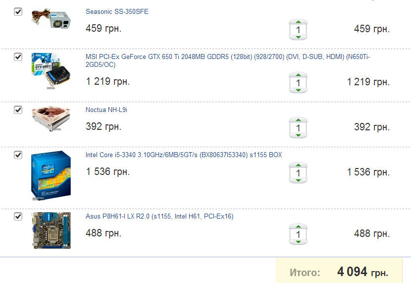 Подумываю собрать малогабаритный комп (возить с собой на вахту). Предпочтение в играх - ETS2, MFSX, WoT. Ну и погонять в кризис также иногда. Имеется уже память Hynix original 2*2 PC-1333, в будущем возможно увеличение 2*4 (при необходимости), и жесткий диск самсунг 500 Г, 7200 об. Особого суперпупербыстродействия не нужно, габариты корпуса будут примерно 130*180*230, опыт сборки уже имеется. Главный вопрос - хватит ли кулера на проце, блока питания и достаточно ли будет 3340?