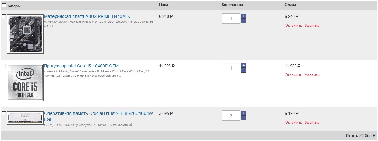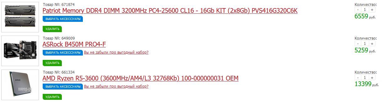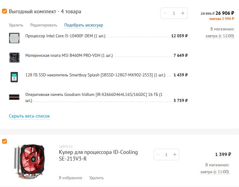 Dedperded23 Конфиг описан не полностью, поэтому добавлю самый дешевый ССД для выполнения условий "выгодные комплекты" и кулер на всякий случай (если старый не очень).