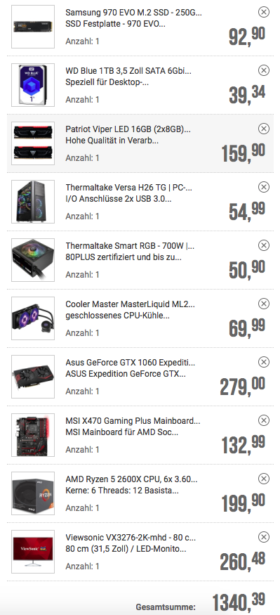 получается надо от 32 гб оперативки самсунг наверное простой 16гбх2 проц амд никаких принадлежностей, или на интел скидки есть? вк тут вроде как непринципиальна, но да что-то в районе 1060 накидал себе на ваши денюжки