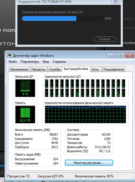 3 минутный ролик без GPU рендера на 2х 2687w v2 обрабатывается около 50 минут, с GPU рендером не тестировал.