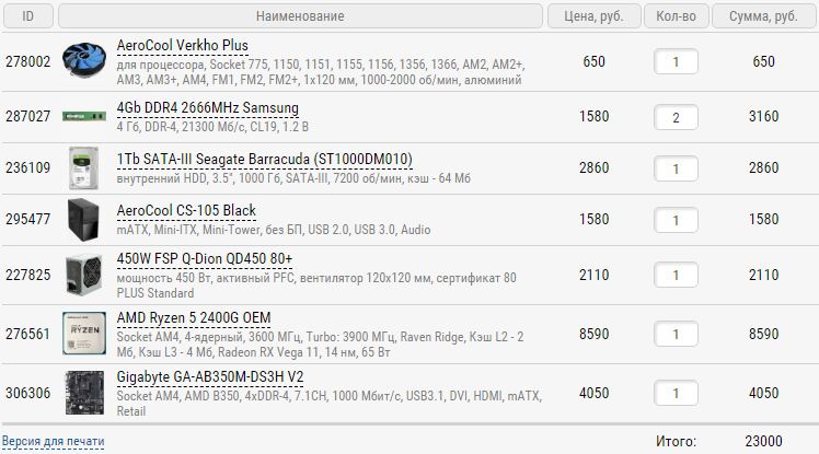Добрый день. В мае подбирал себе тут офисный комп до 25 тыс. Тогда собрать не получилось, планирую на следующей неделе. Напомню: любой магазин в Москве, собирать сам не буду, CCD под систему есть. Следующая сборка актуальна, или что поменять? Цену лучше дешевле.