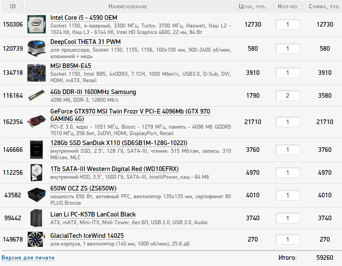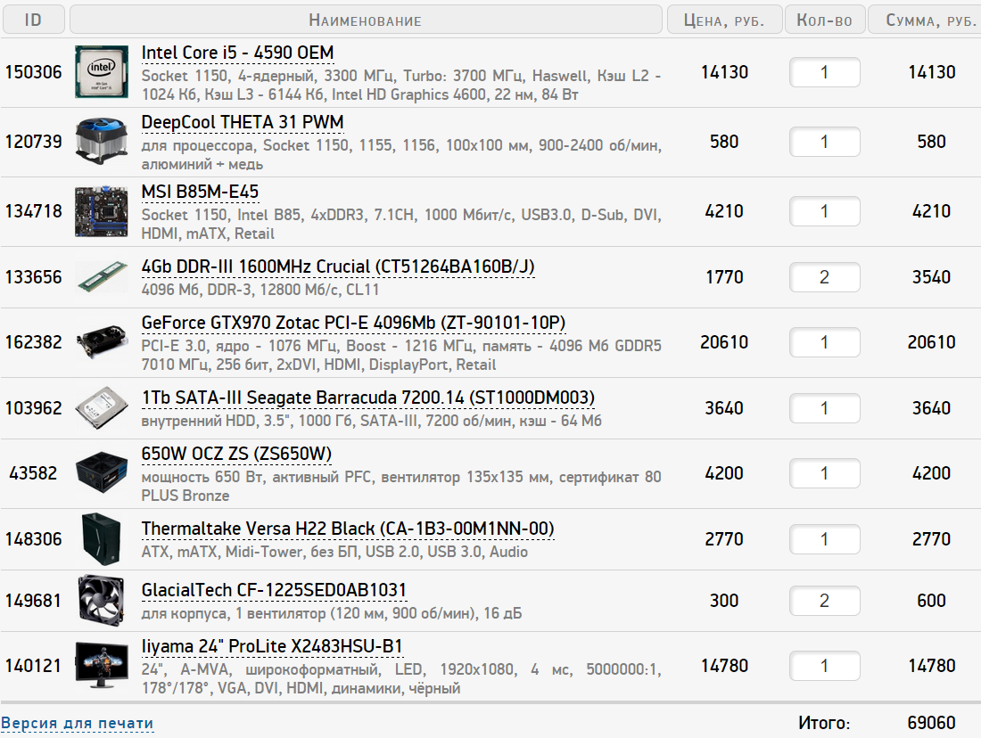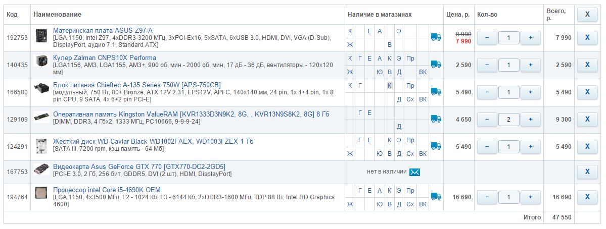 Если правильно понял, то собирать будете сами и всё равно где тариться? Если - да, то может по яндекс-маркету прикинуть?