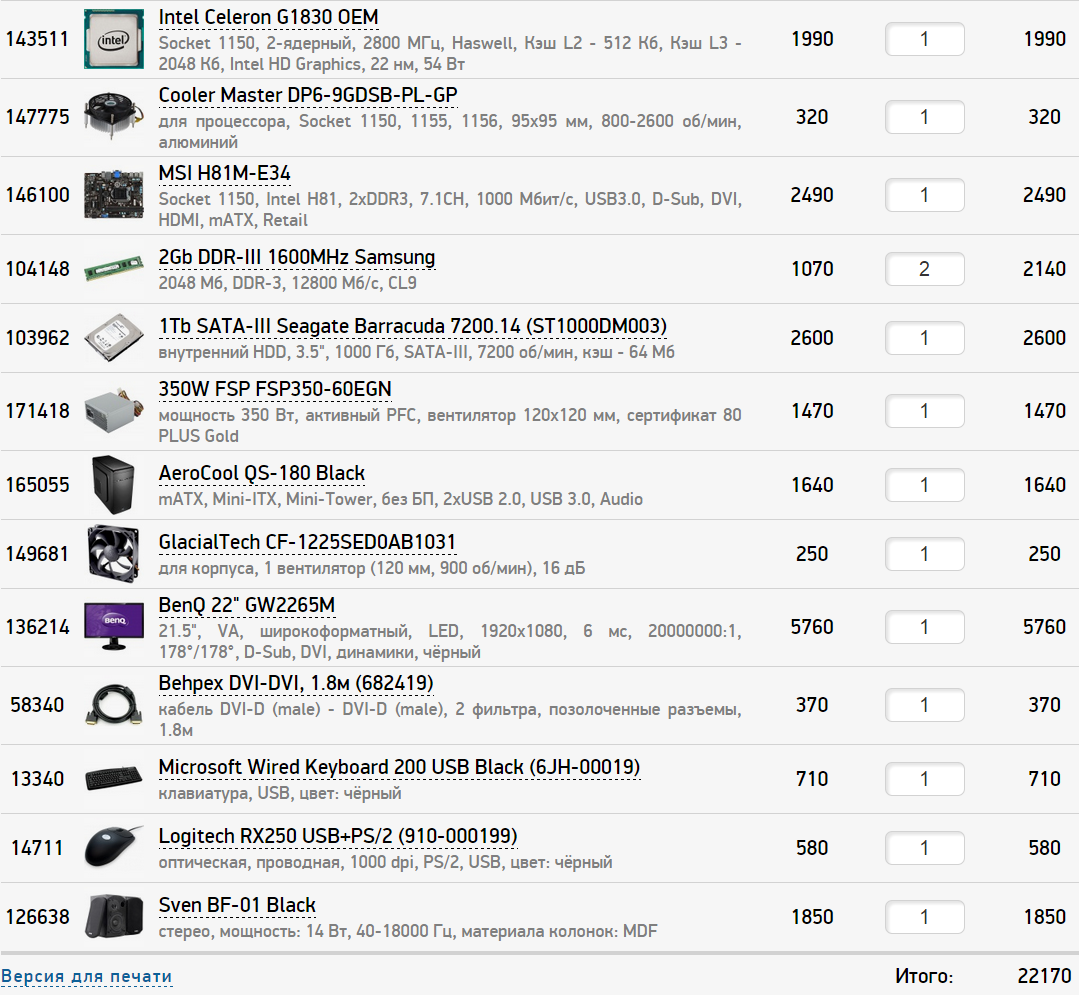 Noveon, спасибо! 2 тыр., наверное, переживем)), тем более тут тебе и клава и мышь и колонки, про которые я не упоминал. В общем-то, превышения и нет вовсе. Ещё раз благодарю.