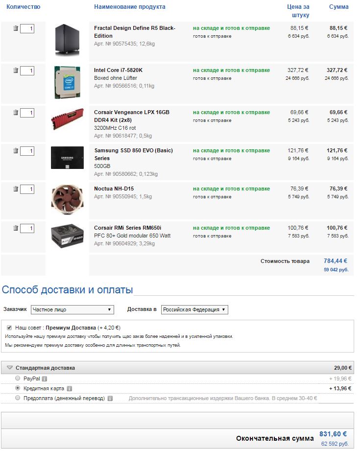 сюда не вместилась видеокарта и материнская плата, пишет более 20 кг. Но я посмотрел материнку и видео можно взять и у нас примерно за ту же цену что и на CU: