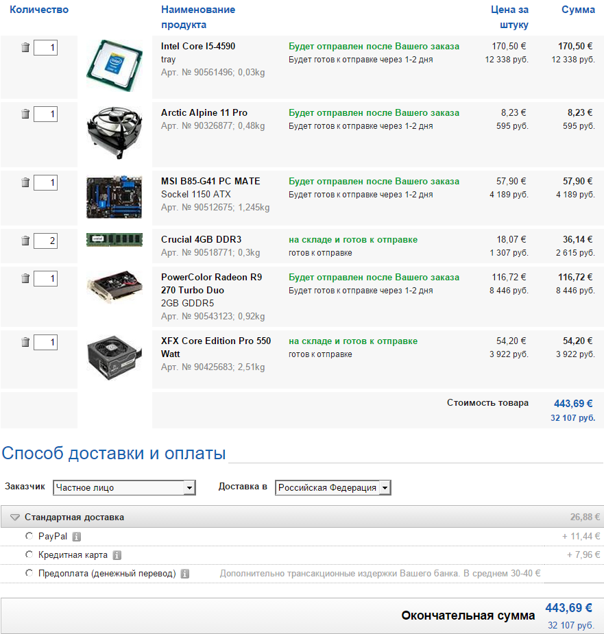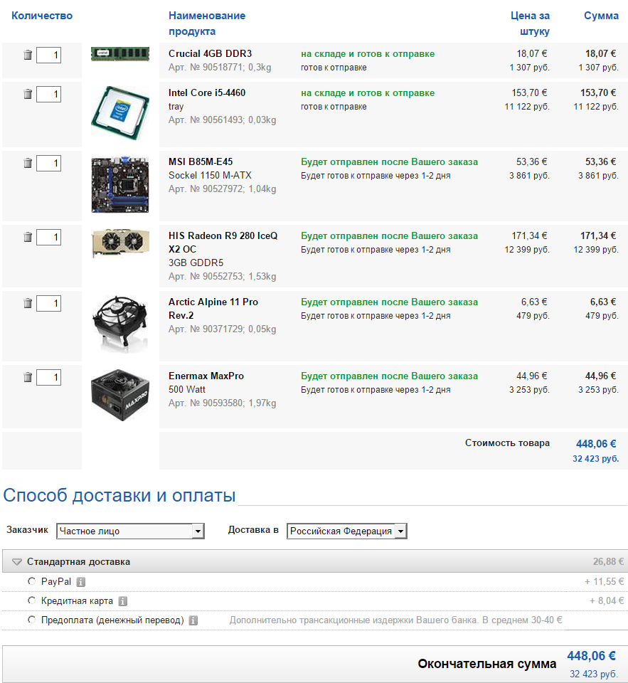 Всем привет, попросили собрать комп до 40к (корпус уже выбрали в городе за 3.5к рублей) для парня 13 лет, в компах он насколько мне известно особо не шарит поэтому разгон не планируется. Вот скрин корзины с computeruniverse.ru - http://SSMaker.ru/c921175c/ В блоках питания не шарю, не знаю какие сейчас хорошие а видяху сначала хотел под 12 директ но потом подумал что он ему нафиг не сдался тк сидеть будет на win 7. Видео можно из старых поколений но главное производительную для игр. По прайсу магазина нужно уложиться в 490 евро с доставкой. Заранее спасибо!