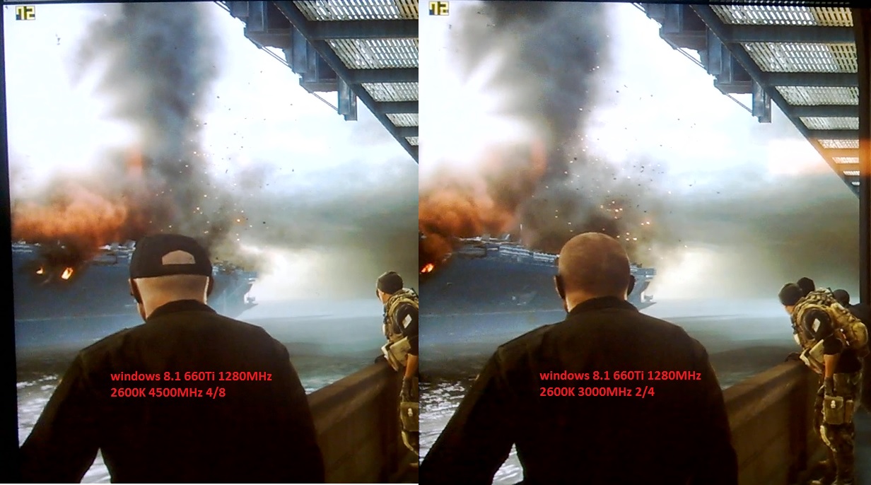 конкретно в этой игре HT ничего не даст, я сравнил 2600K 4500MHz 4 ядра 8 потоков и 2600K 3000MHz 2 ядра 4 потока - абсолютно идентичные показатели на 600ti 1280MHz - а это в районе 50fps среднего на ультре 1920x1080 без сглажки. а если вставить четрые титана, все равно 2 ядра 4 потока 3000MHz хоть и будут тормозить всю видеосистемы, но уже дадут отличную производительность без тормозов...