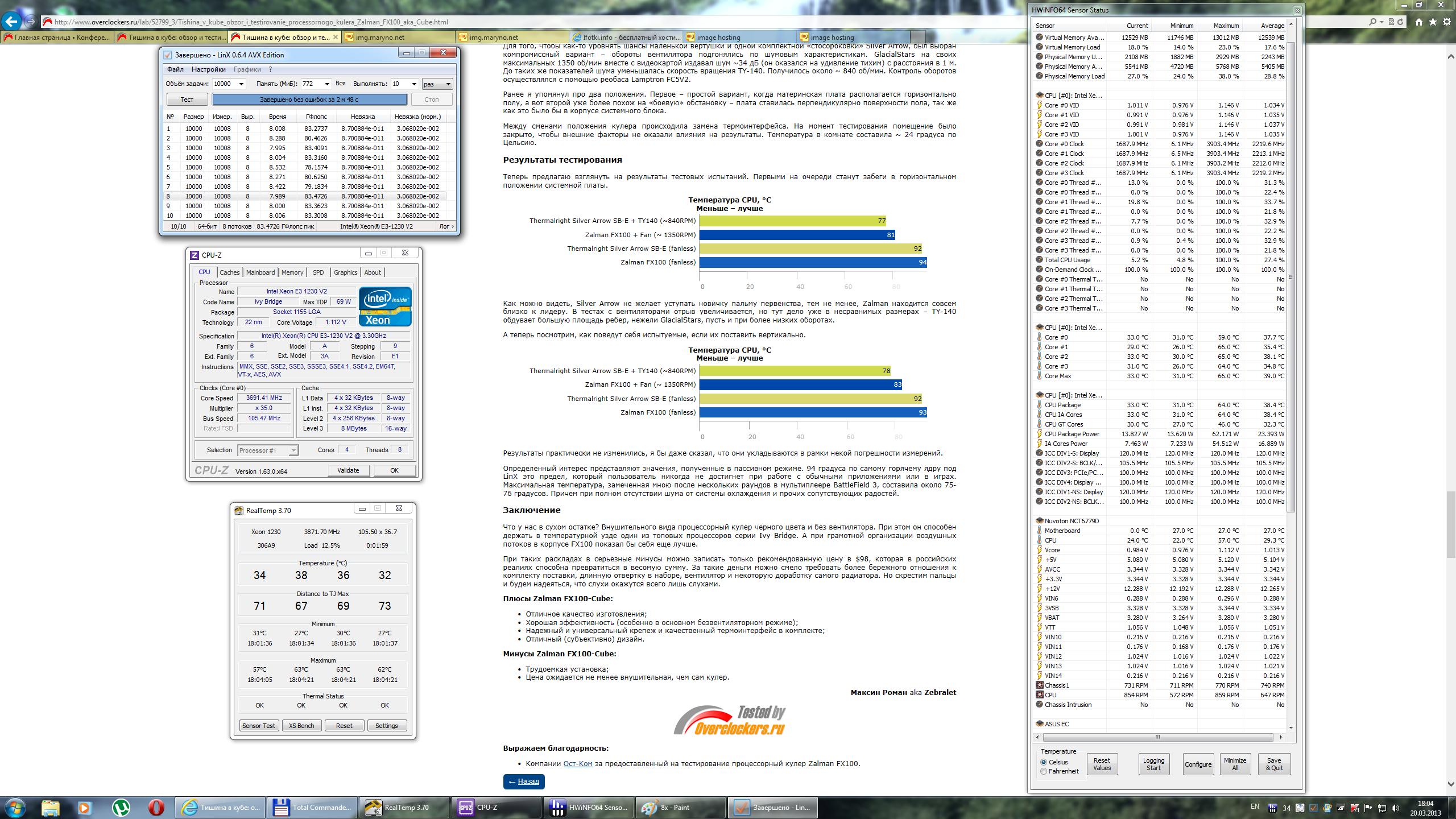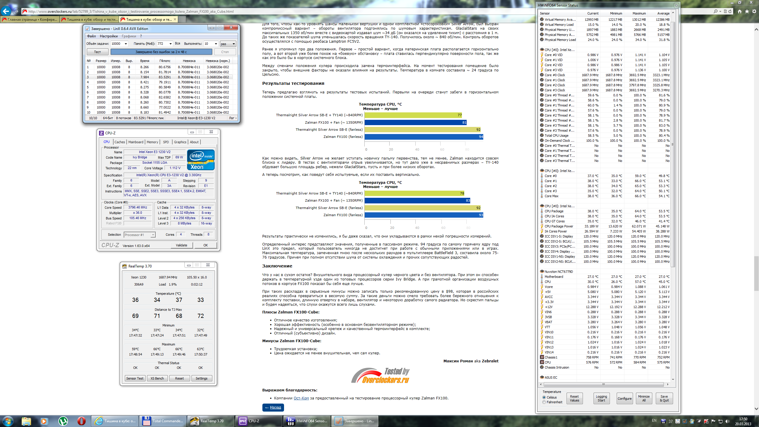 http://www.bit-tech.net/hardware/cooling/2013/03/08/zalman-fx100-cube-review/2а вот и адекватный тест, д14 который слабее стрелы, уделал это недоразумение на 24гр