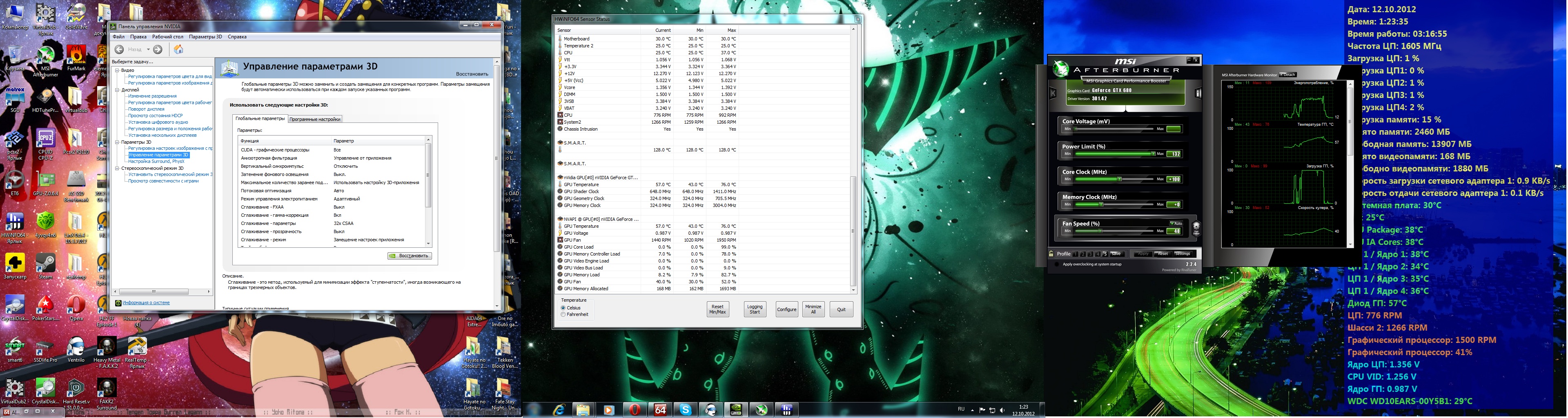 #77 (тут же на скрине-загрузка шины памяти в hwinfo-это для тех кто думает что 256 битной шины мало-удивляйтесь ее более чем хватает для 3840-1024 с 16х сглаживаем,причем без разгона памяти) ни о каких