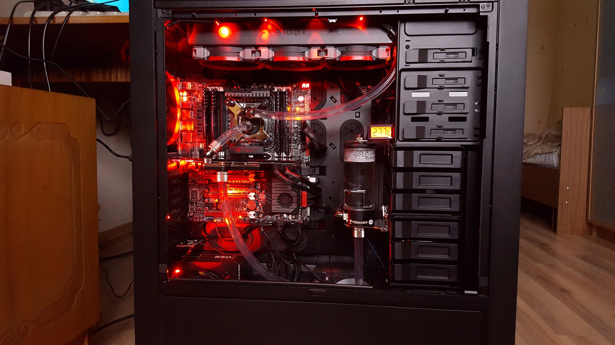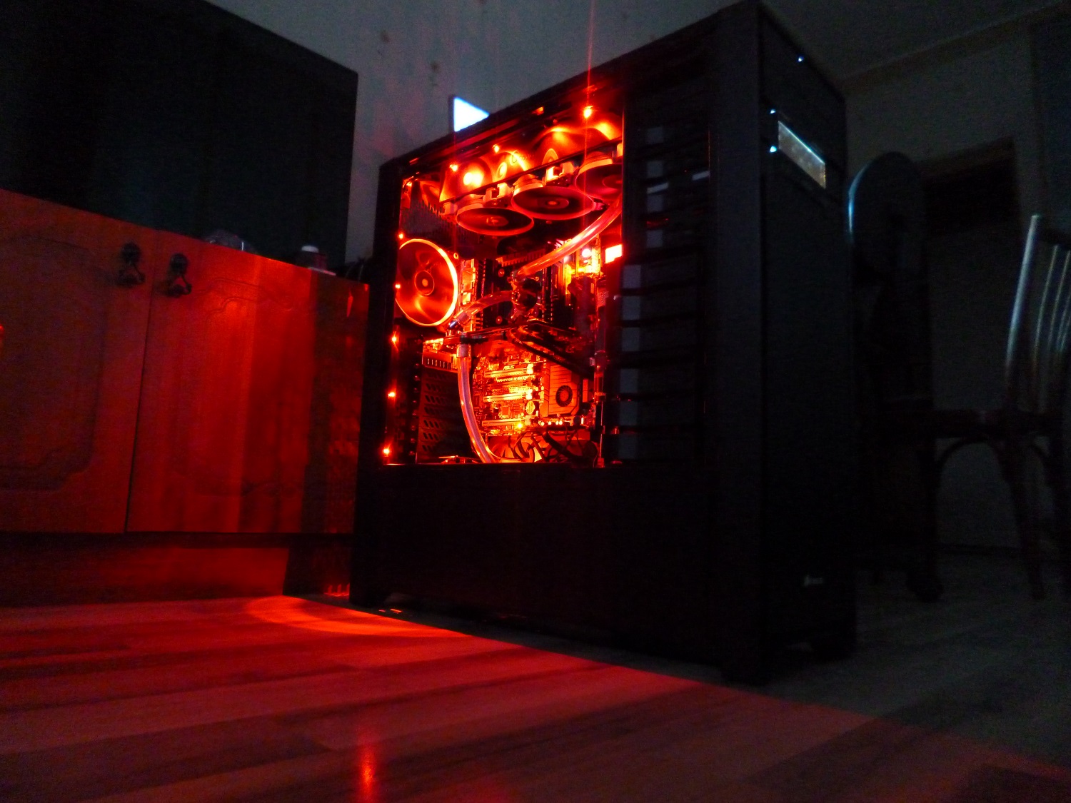 Уважайте других пользователей и свое время - никто не будет рассматривать выбеленную вспышкой кашу из проводов и тем более, восторженно комментировать ваши усилия (на что, вы, полагаю, и рассчитываете выкладывая свои фото). Лучше потратьте на 10 минут больше времени и потерпите до утра с известием миру о своем суперкомпе - и вы получите адекватное вознаграждение и объективные оценки ваших усилий.