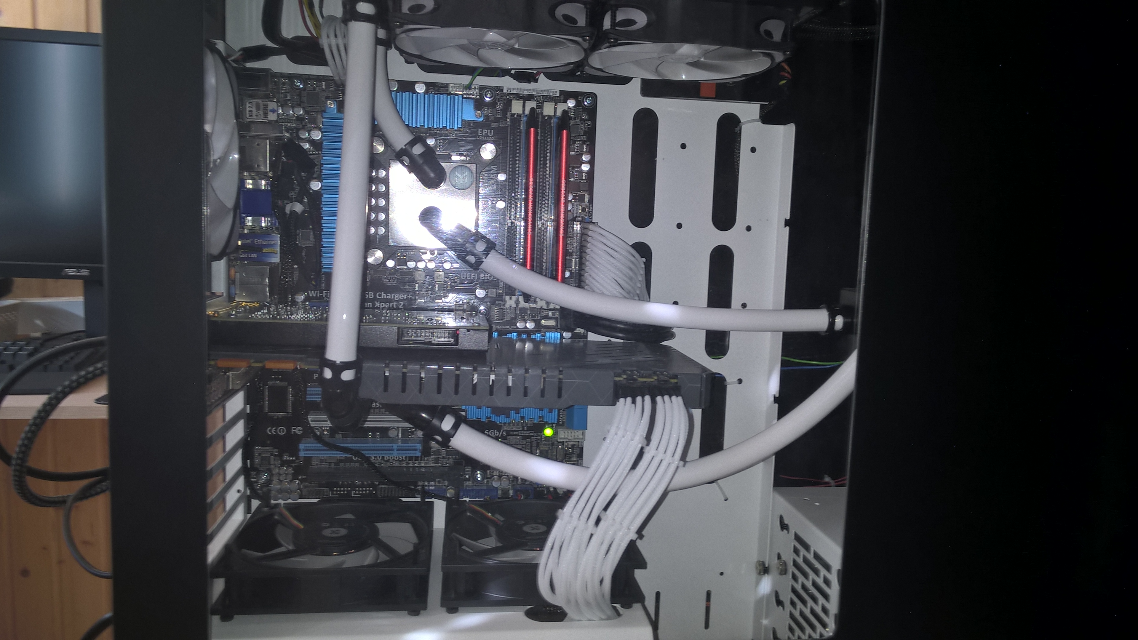 Уважайте других пользователей и свое время - никто не будет рассматривать выбеленную вспышкой кашу из проводов и тем более, восторженно комментировать ваши усилия (на что, вы, полагаю, и рассчитываете выкладывая свои фото). Лучше потратьте на 10 минут больше времени и потерпите до утра с известием миру о своем суперкомпе - и вы получите адекватное вознаграждение и объективные оценки ваших усилий.