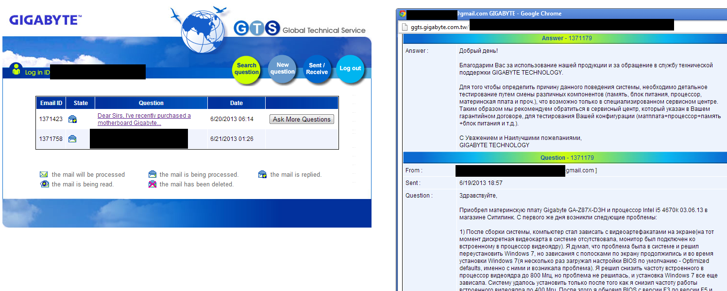 Проблемы мои начались при покупке материнской платы и процессора на базе системы Intel Haswell, а точнее Core i5 4670k + GIGABYTE Z87X-D3H. Я первым делом обратился к производителю материнской платы, описав проблемы(для тех кто не хочет читать, снизу есть видео), вот отрывок письма:
