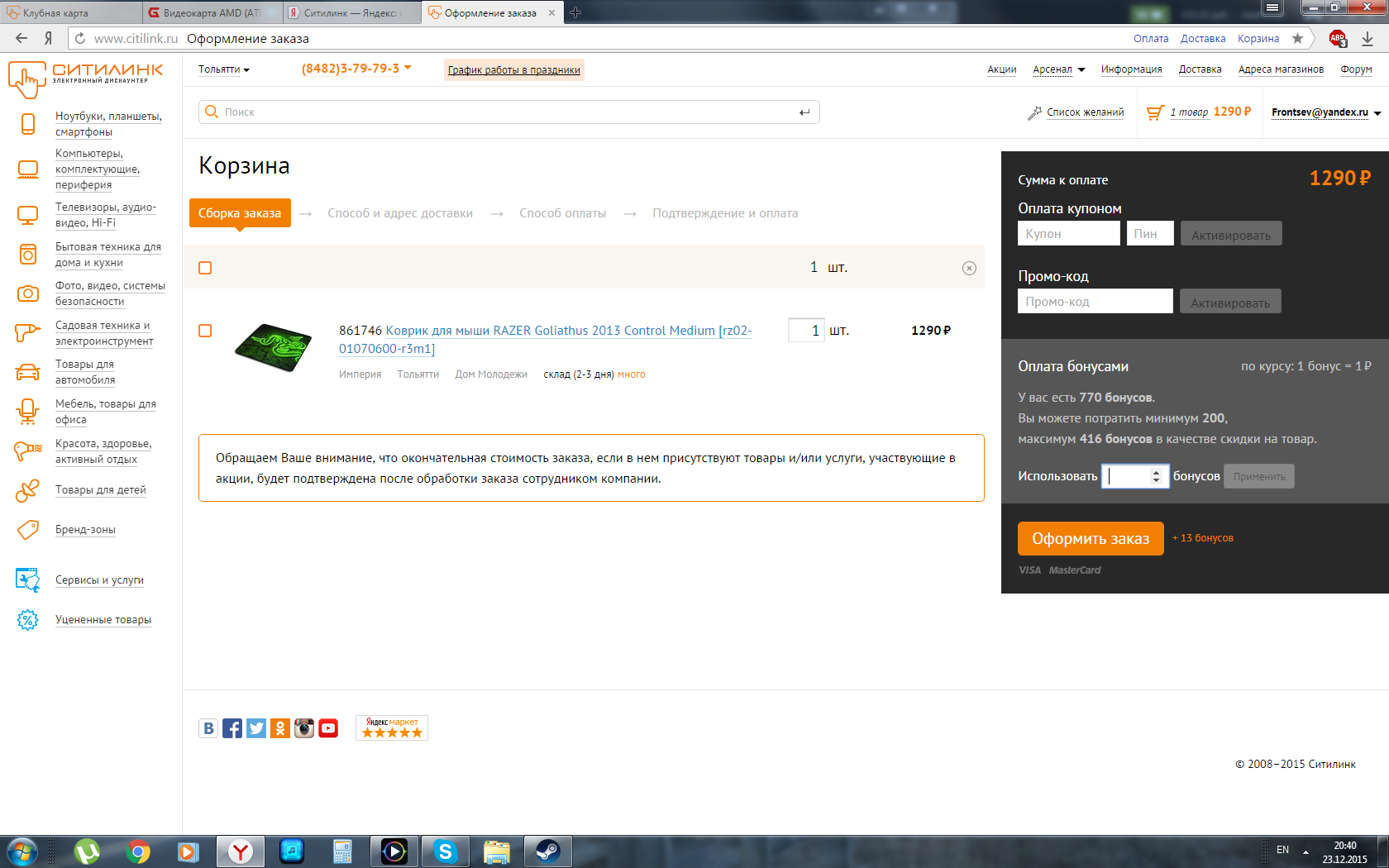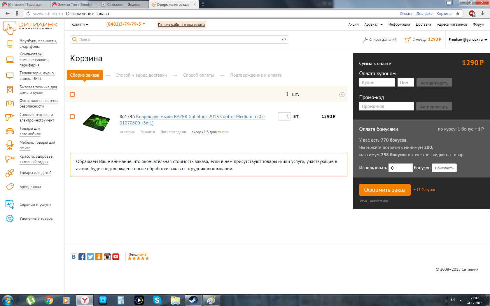 Хотел заказать, а они взяли количество применяемых бонусов уменьшили Сравните верхнее фото и это. Стоймость товара одинакова