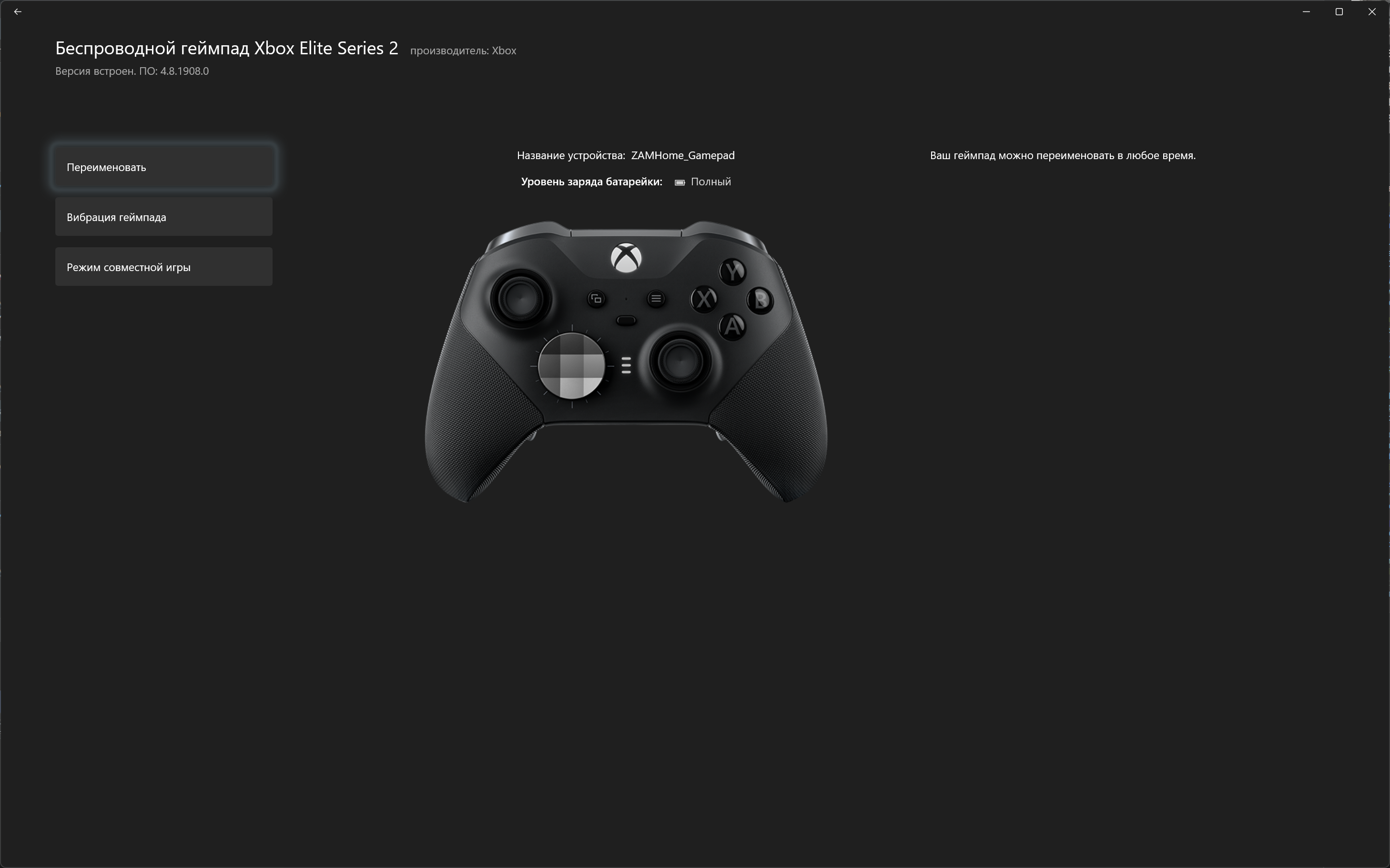 У меня пишет - нет доступных обновлений. Прошивка геймпада - 4.8.1923.0