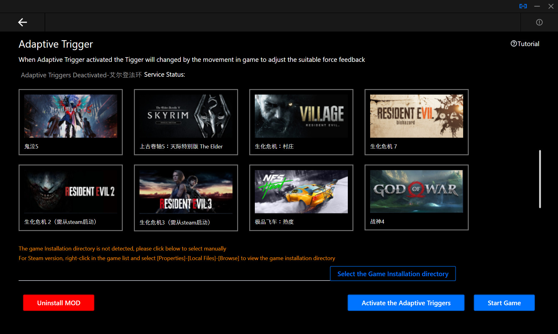 В фирменном приложении есть режим "Adaptive Trigger", этот режим позволяет полноценно использовать обратную связь на курках в некоторых играх.
