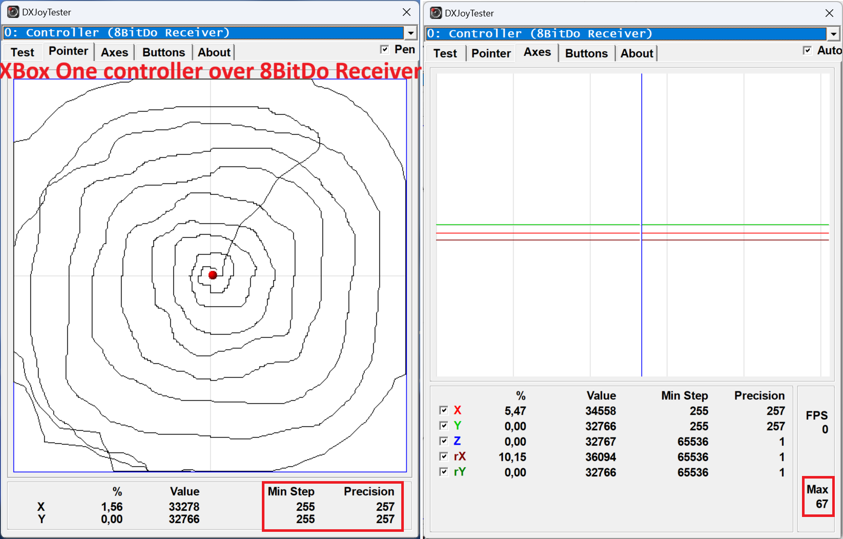 Ну приемник может пересчитывать возможно... я хочу по проводу посмотреть... как соберусь силами так сказать =) 8BitDo там мне кажется какой то алгоритм встроен... если быстро круги нарезать то они ок выходят... если медленно - то лесенками рисует.
