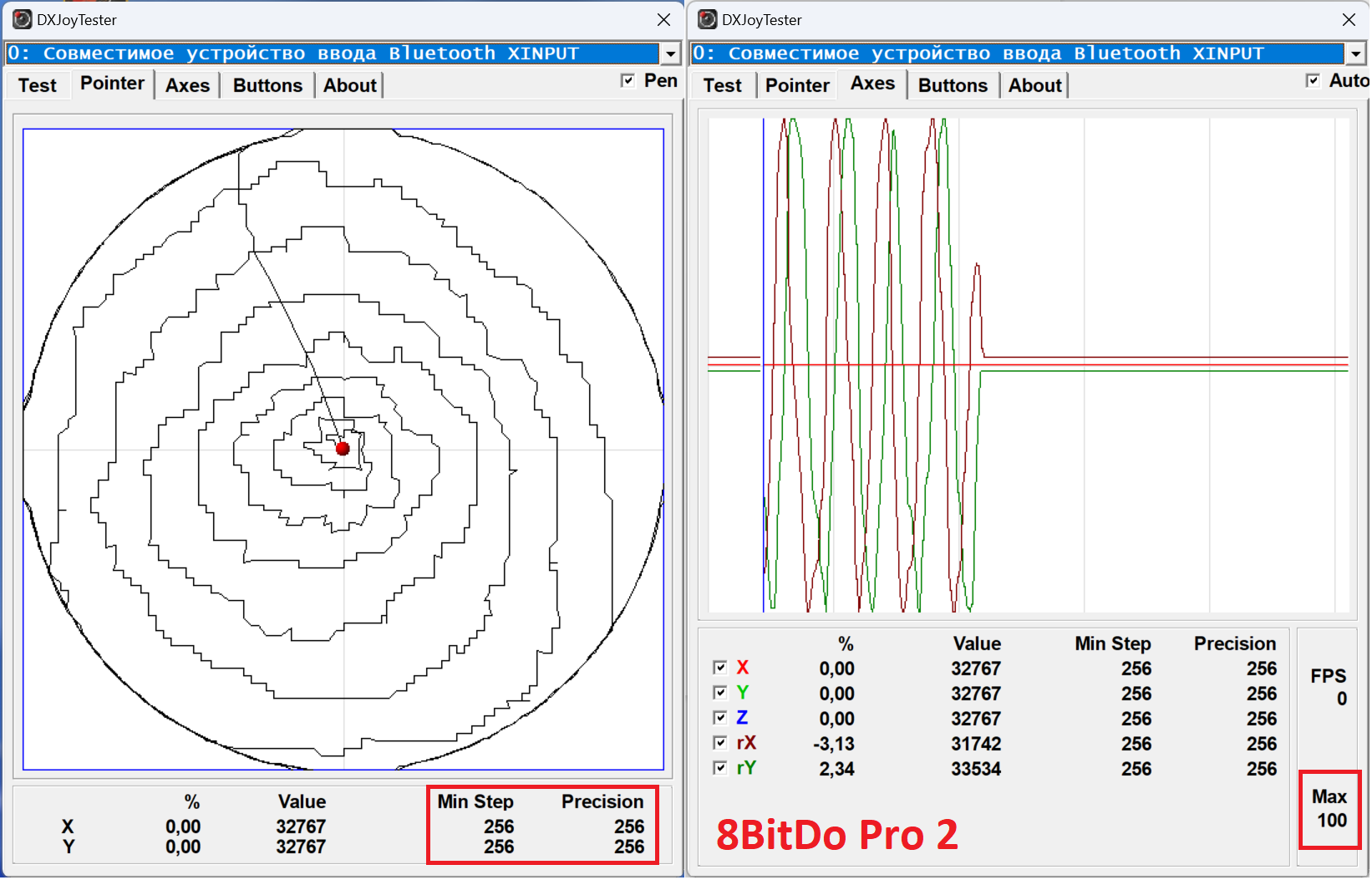 спасибо поищу, кстати только что вычитал про эту разрешающую способность. человек на 4ПДА пишет: "в шутеры играть на этой геймпаде не очень резонно будет, потому что разрешение стиков низкое. у 8bitdo ultimate bluetooth - 256 положений стика (128 в каждую из сторон), а у xbox controller приблизительно 542, если верить программе joystick presicion tester." т.е. мне этот пад уже точно не подойдет:( хотелось бы все-таки атомик харт и старфилд проходить на нормальных стиках.