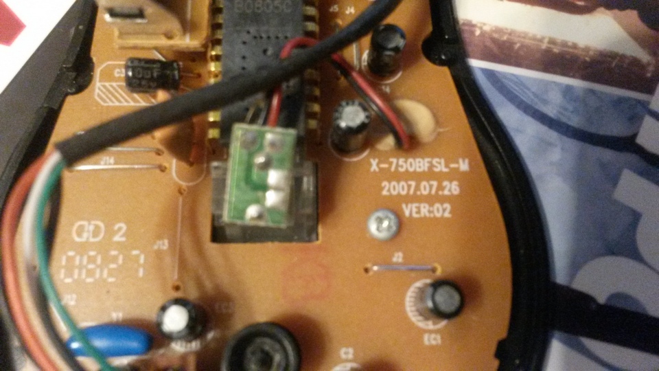 Сначала стал искать обновлённые ревизии X-750F, ничего не нашёл. Нашёл, была какая-то модель X-750BF, вроде буквы совпадают. Но у мыши X-750F плата тоже промаркирована [X-750BF-M]. Но платы разные.