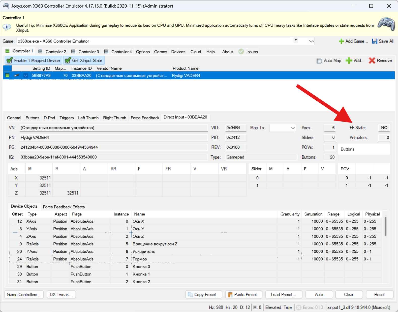 Добавлено спустя 39 минут 3 секунды: Я посмотрел с Flydigi Vader 4 в режиме DInput. Без FF драйвера на этот режим вибрации через эмулятор не будет.