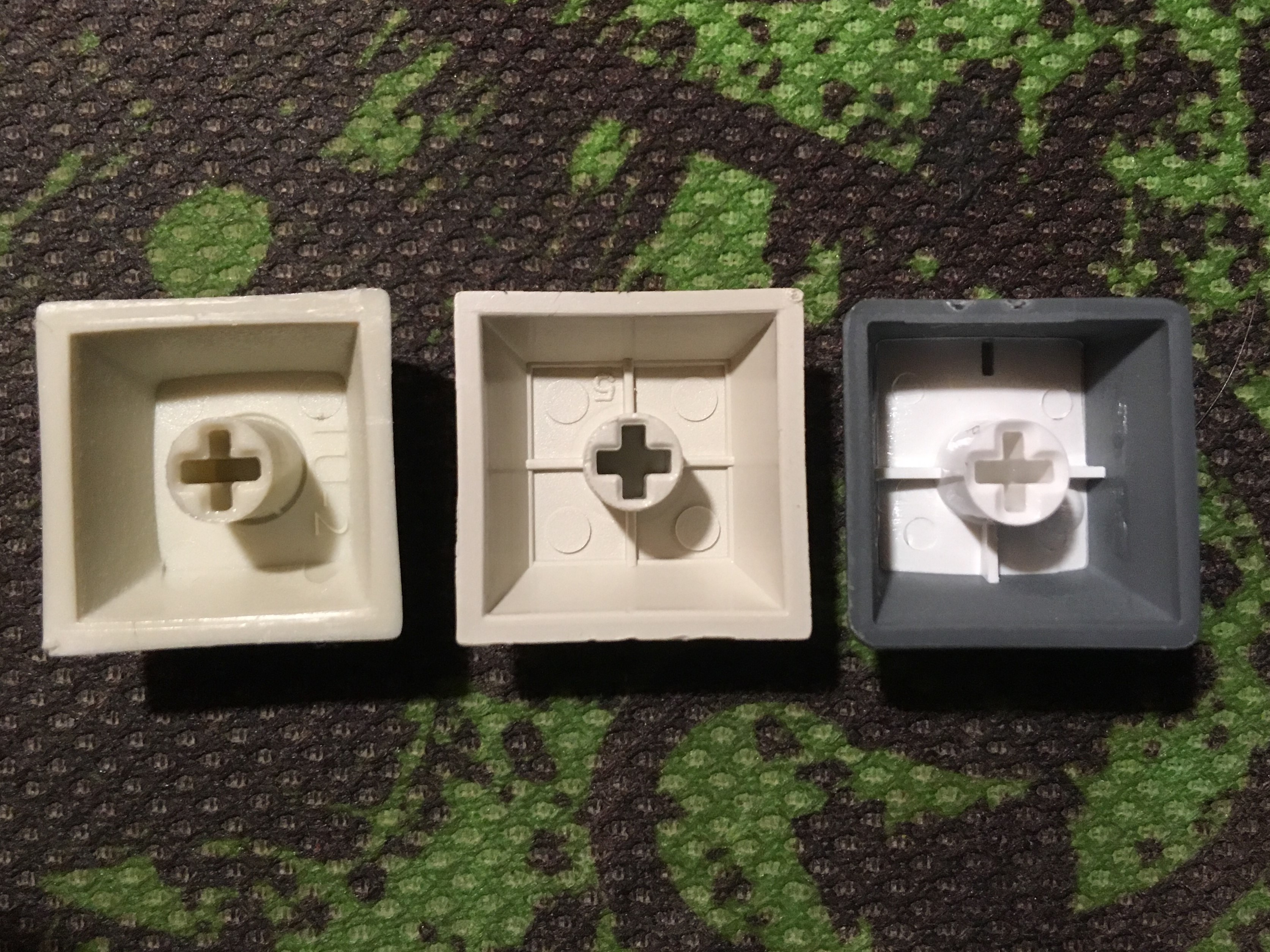 ABS - один из самых распространенных пластиков для изготовления колпачков, встречающихся на подавляющем большинстве современных клавиатур. ABS колпачки просты и дешевы в производстве, но довольно быстро стираются (полируются пальцами), слабо противостоят механическому и химическому воздействию, меняют цвет под воздействием ультрафиолета (желтеют). PBT – дорогостоящий и сложный в производстве пластик с отличными физическими свойствами, идеально подходящими для изготовления самых качественных и долговечных кейкапов. Практически лишен недостатков ABS, но, как правило, дороже. PPS - очень прочен и хорошо выдерживает высокие температуры. Успешно заменяет не только другие пластики, но, также, реактопласты и металлы. В изготовлении кейкапов используется совсем недавно, внешне похож на PBT, но более жесткий, по "звуку" напоминает металл из-за своей толщины, не пропускает свет, так что с подсветкой использовать не получится. Очень дорог.