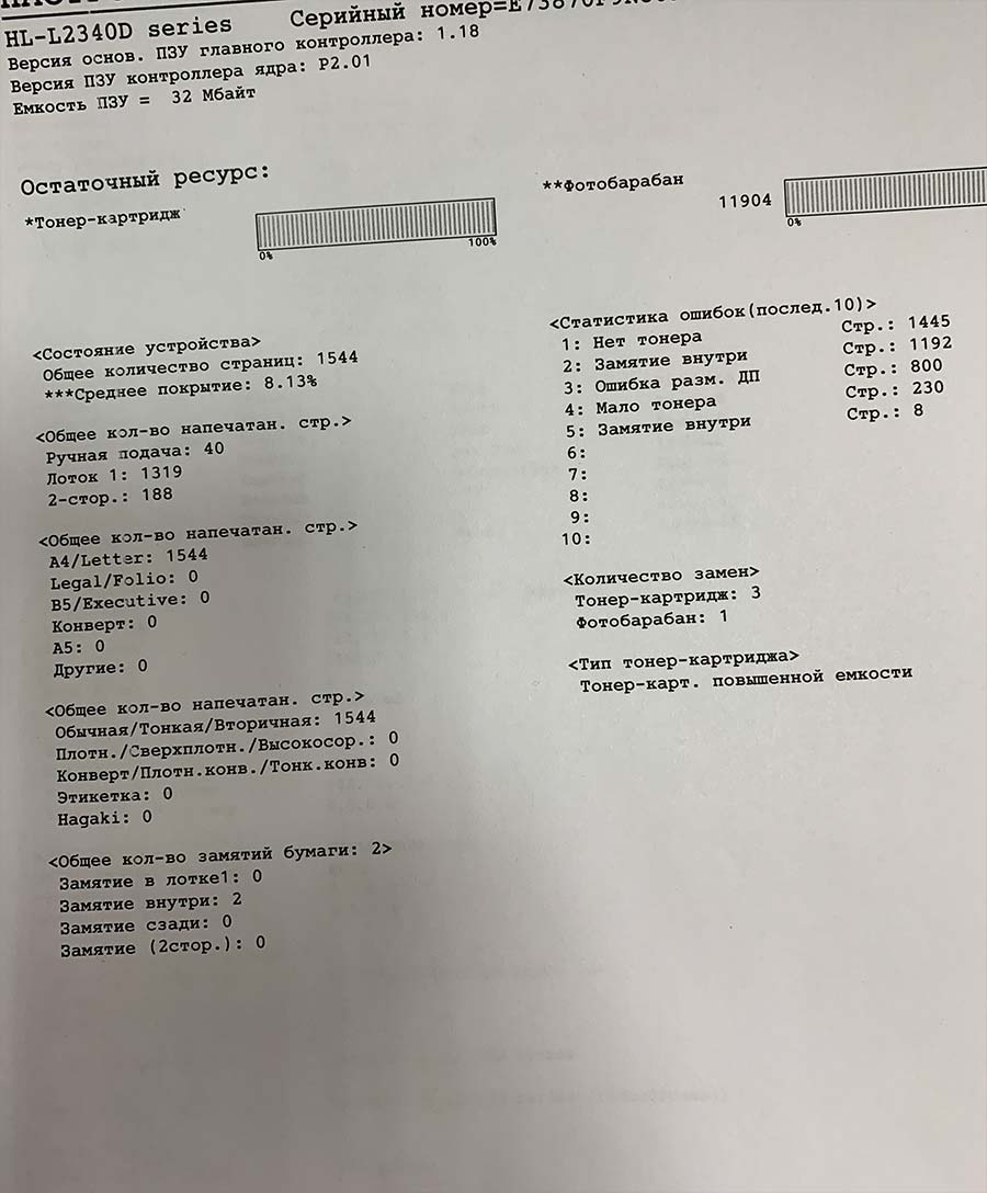 Купил где-то пол года назад по совету здесь BROTHER HL-L2340DWR. Все устраивало. Закончился стандарты картридж, купил совместимый Сакура, он тоже закончился, и вот недавно отдал на заправку родной картридж. и вот спустя 2 недели на всех листах печатает с белой вертикальной полоской на весь лист: