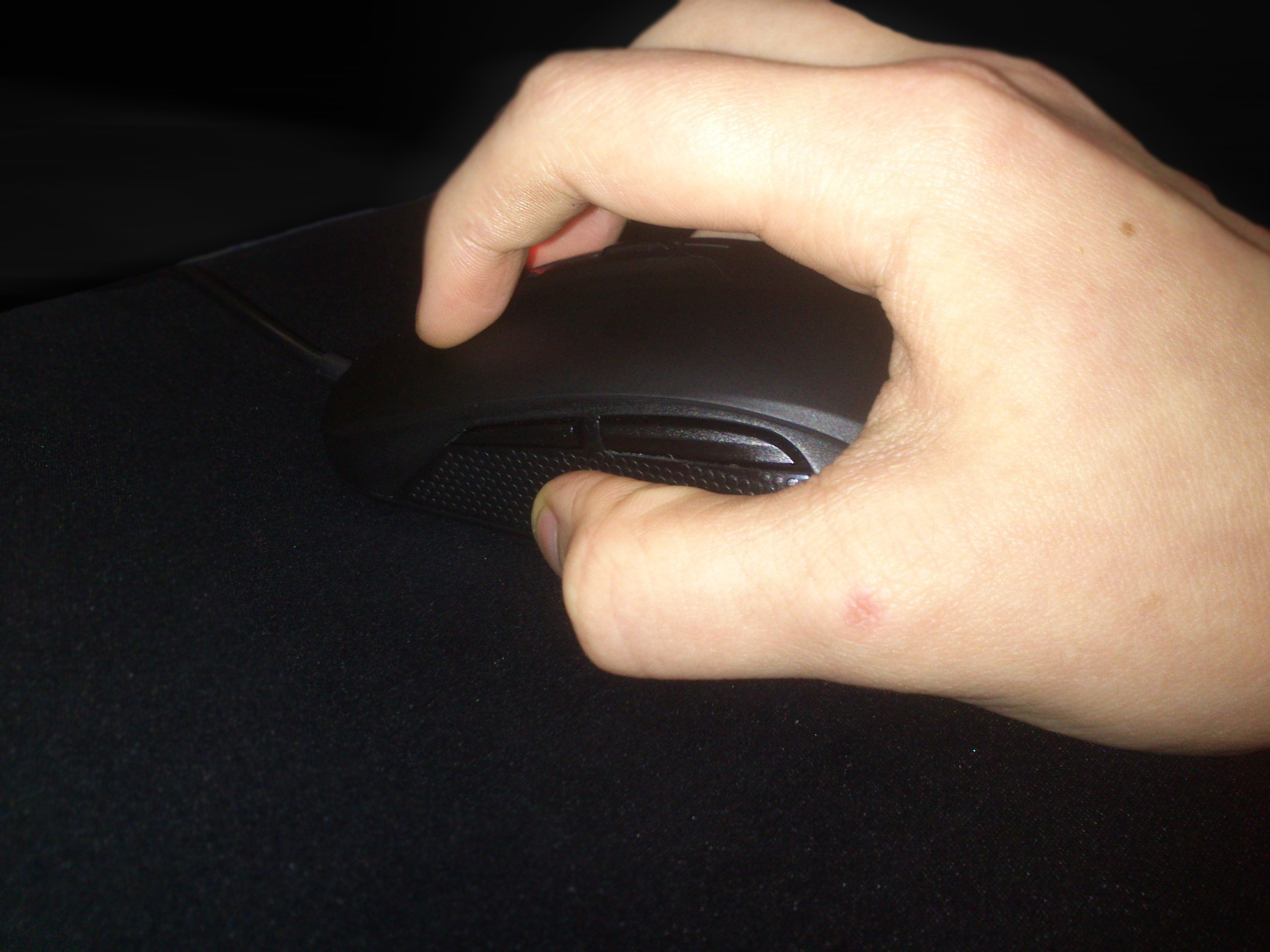 Хват ладонью #77 Вся ладонь лежит на мышке. По бокам мышку придерживают большой палец и мизинец. Такой хват лучше всего подходит для работы в офисе, т.к. обеспечивает наименьшую утомляемость руки во время работы.